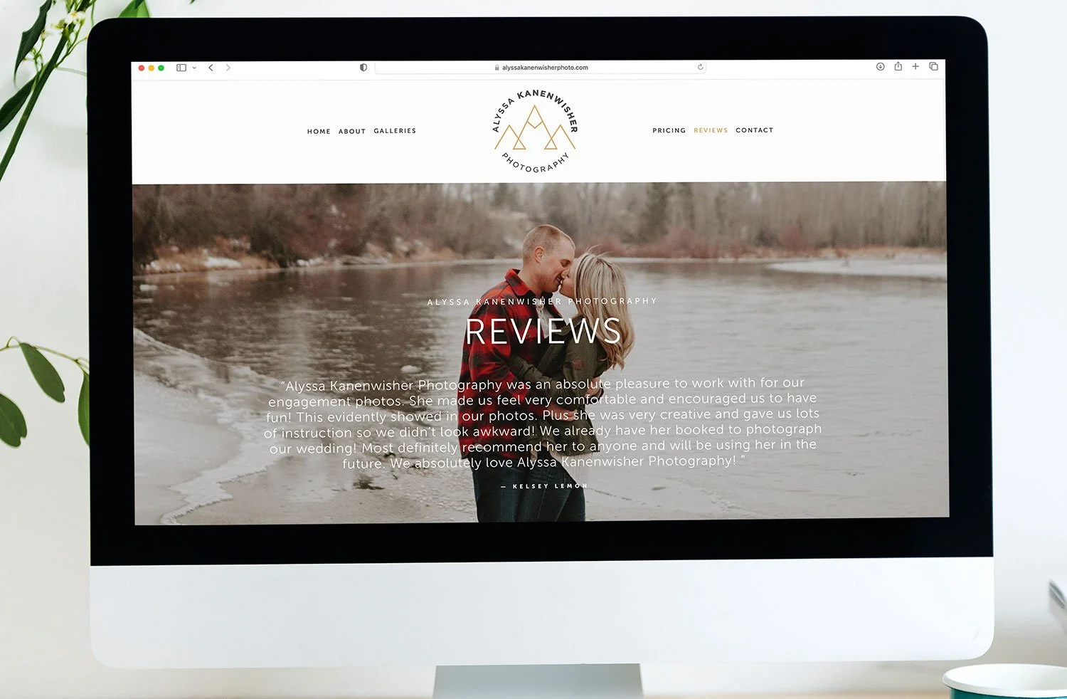 Problem to solve: Represent modern style with minimal color as well as home state of Montana with stylized mountain design. Showcase images on website as large as possible, provide easy navigation and clear access to services and contact information.